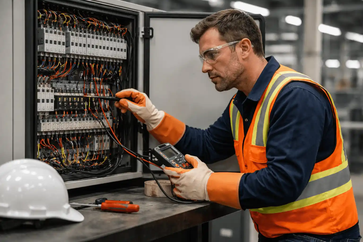 - Électriciens et techniciens de maintenance effectuant des travaux sur installations électriques